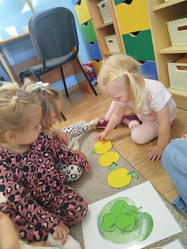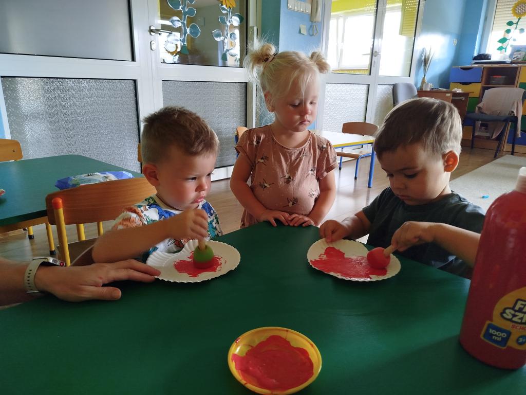 W trakcie zajęć plastycznych powstały liczne prace z wizerunkiem jabłka. Maluchy malowały, wycinały i kleiły, a ich prace stały się piękną galerią „Jabłkowych inspiracji”. Zajęcia rozwijały koordynację ręka-oko, kreatywność oraz zdolność koncentracji.