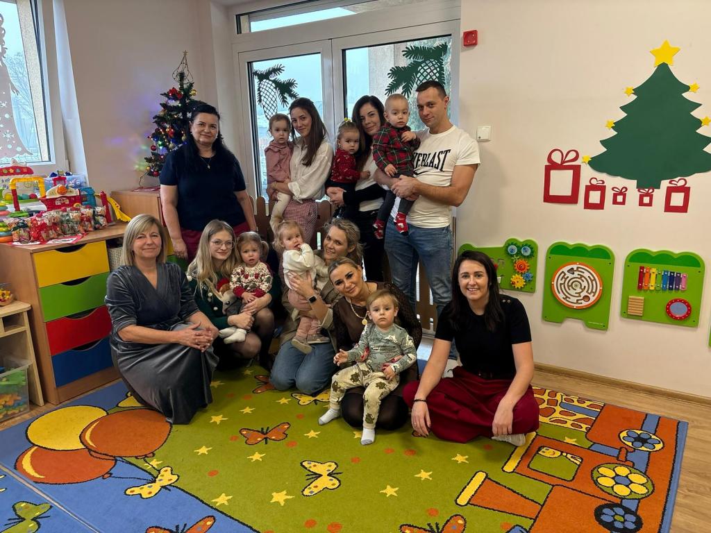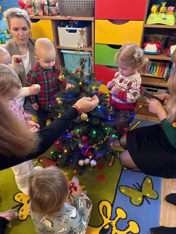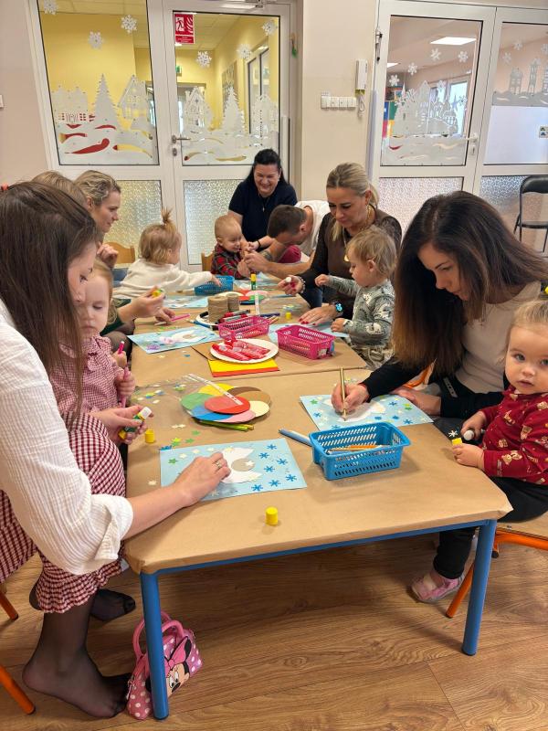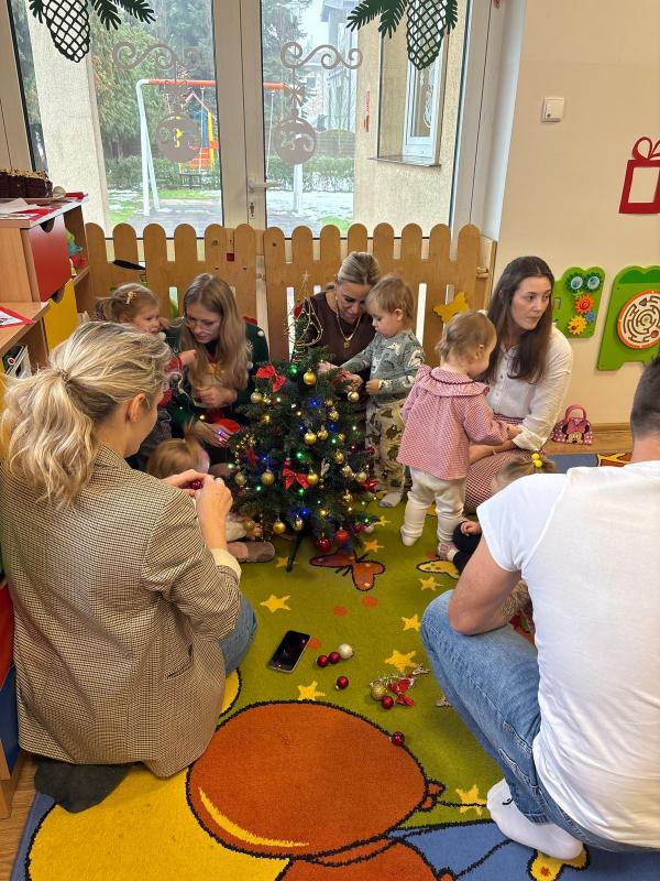 W związku z nadchodzącymi Świętami Bożego Narodzenia w naszym żłobku odbyły się wyjątkowe warsztaty świąteczne, zorganizowane dla dzieci uczęszczających do placówki oraz ich rodziców. Spotkanie przebiegło w ciepłej, rodzinnej atmosferze i było doskonałą okazją do wspólnego spędzenia czasu, integracji oraz budowania świątecznego nastroju. Podczas warsztatów dzieci wraz z rodzicami miały okazję wspólnie dekorować choinkę, która szybko wypełniła się kolorowymi i własnoręcznie wykonanymi ozdobami. Uczestnicy z wielkim zaangażowaniem tworzyli świąteczne bombki, łańcuchy na choinkę, aniołki oraz czapeczki Mikołaja. Każda praca była niepowtarzalna i wykonana z ogromnym sercem, co sprawiło, że żłobkowa przestrzeń nabrała wyjątkowego, świątecznego charakteru. Warsztaty były nie tylko okazją do rozwijania kreatywności dzieci, ale przede wszystkim do wzmacniania więzi rodzinnych oraz integracji rodziców i najmłodszych. Wspólna praca, rozmowy i uśmiechy stworzyły atmosferę pełną radości i wzajemnej życzliwości. Serdecznie dziękujemy wszystkim rodzicom za obecność, zaangażowanie oraz wspólnie spędzony czas. Takie chwile pokazują, jak ważna jest współpraca i wspólne przeżywanie radosnych momentów, zwłaszcza w tak wyjątkowym okresie, jakim są Święta Bożego Narodzenia.