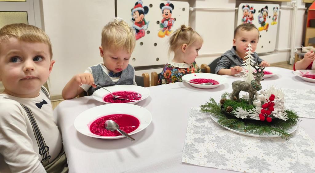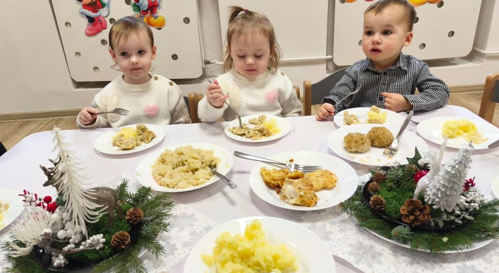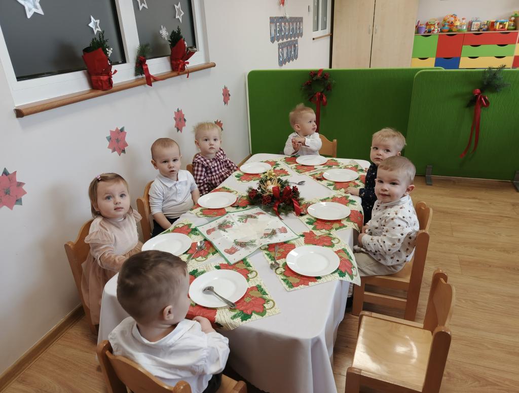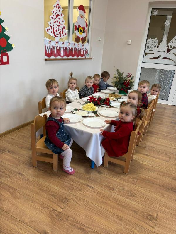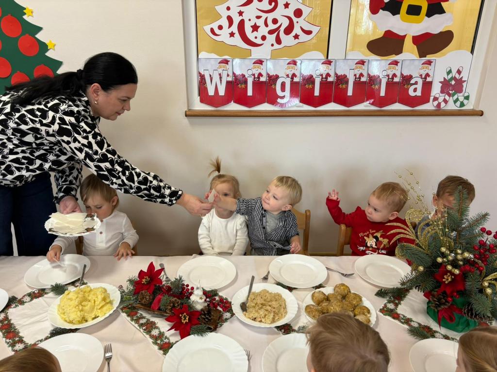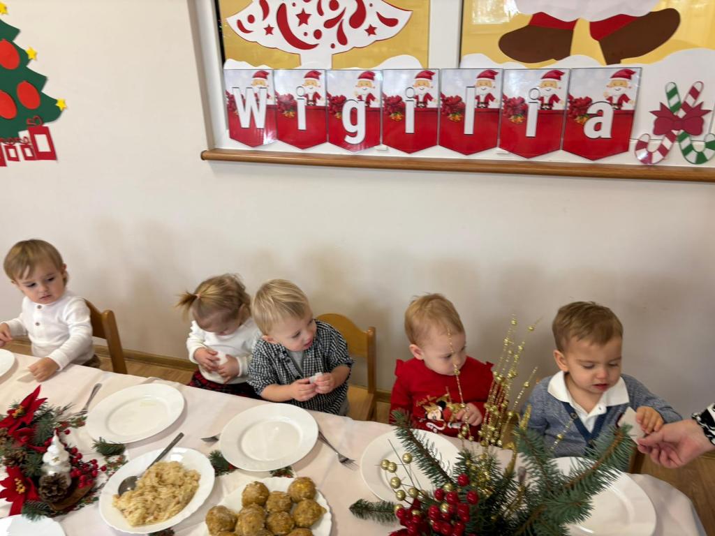 W żłobku odbyła się wyjątkowa uroczystość wigilijna, która wprowadziła wszystkich w prawdziwie bożonarodzeniowy nastrój. Spotkanie było pełne radości, uśmiechów i ciepła, a jego bohaterami były oczywiście dzieci. Dzieci wraz z opiekunkami śpiewały najpiękniejsze kolędy, tworząc serdeczną i świąteczną atmosferę. Następnie nadszedł szczególnie ważny moment – łamanie się opłatkiem. Była to piękna lekcja życzliwości, dzielenia się i okazywania sobie wzajemnej dobroci. Następnie wszyscy zasiadali do wigilijnego stołu. Czekały na nich tradycyjne potrawy wigilijne, przygotowane przez panie kucharki z Przedszkola „Jarzębinka”. Wigilijne spotkanie w żłobku było piękną okazją do kultywowania polskich tradycji oraz budowania poczucia wspólnoty już od najmłodszych lat.
